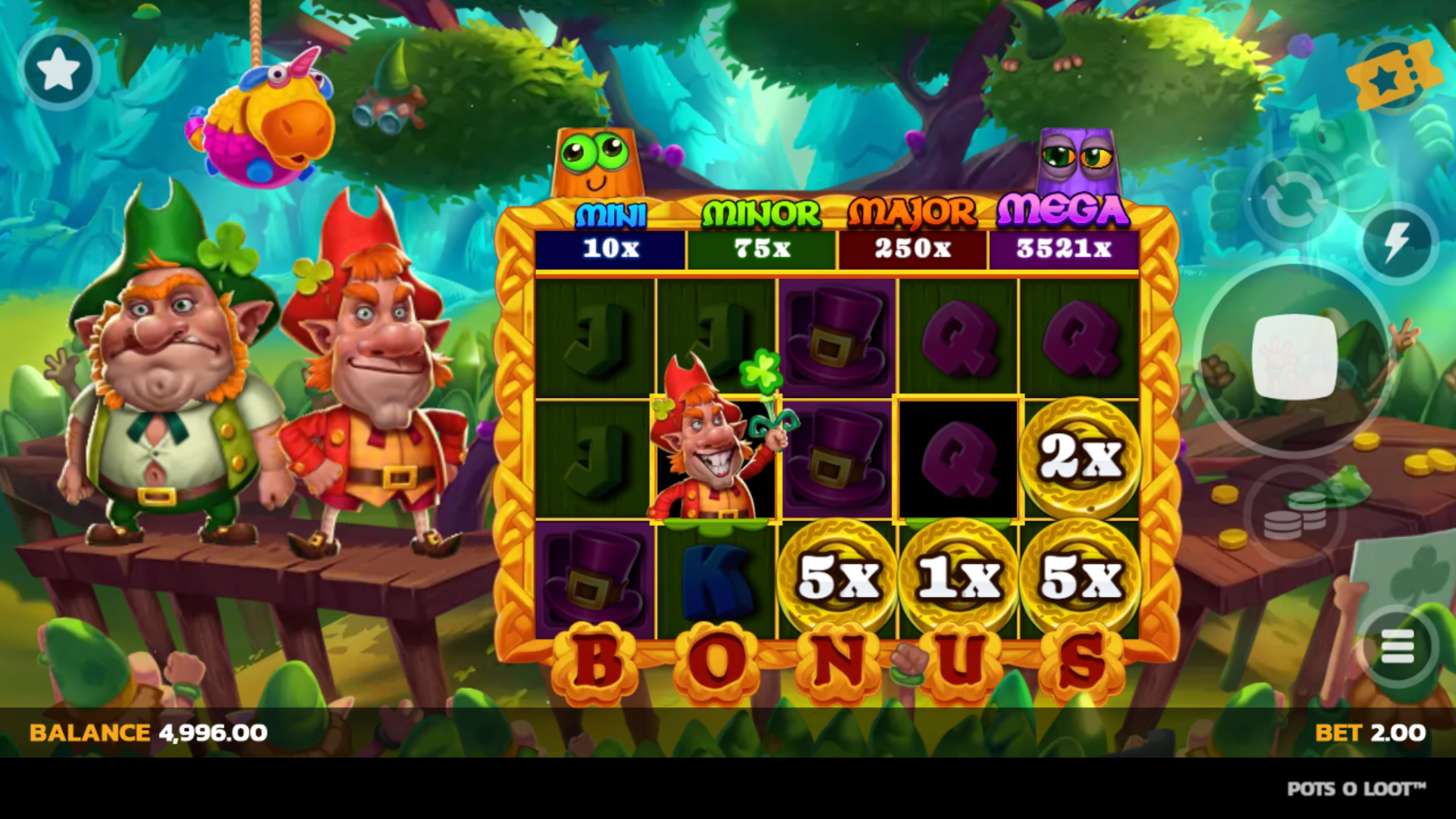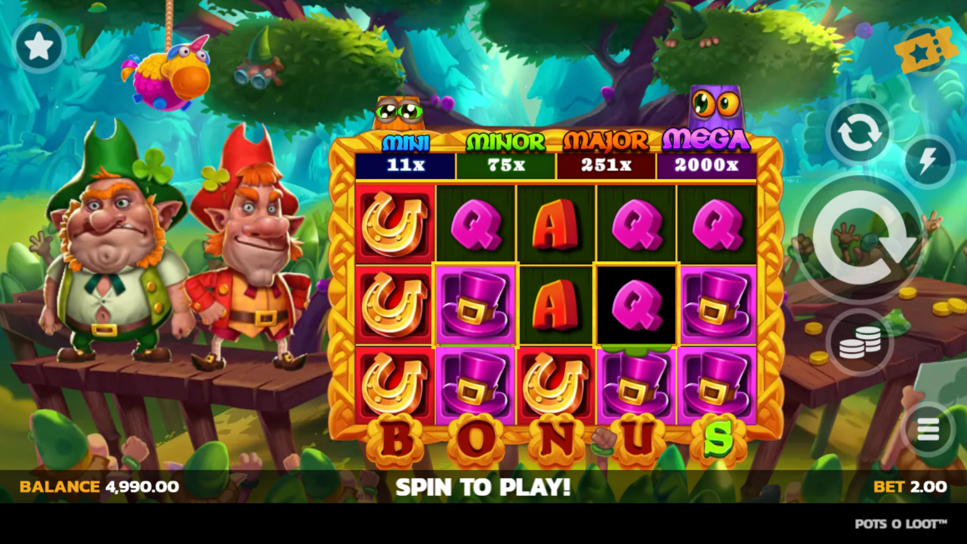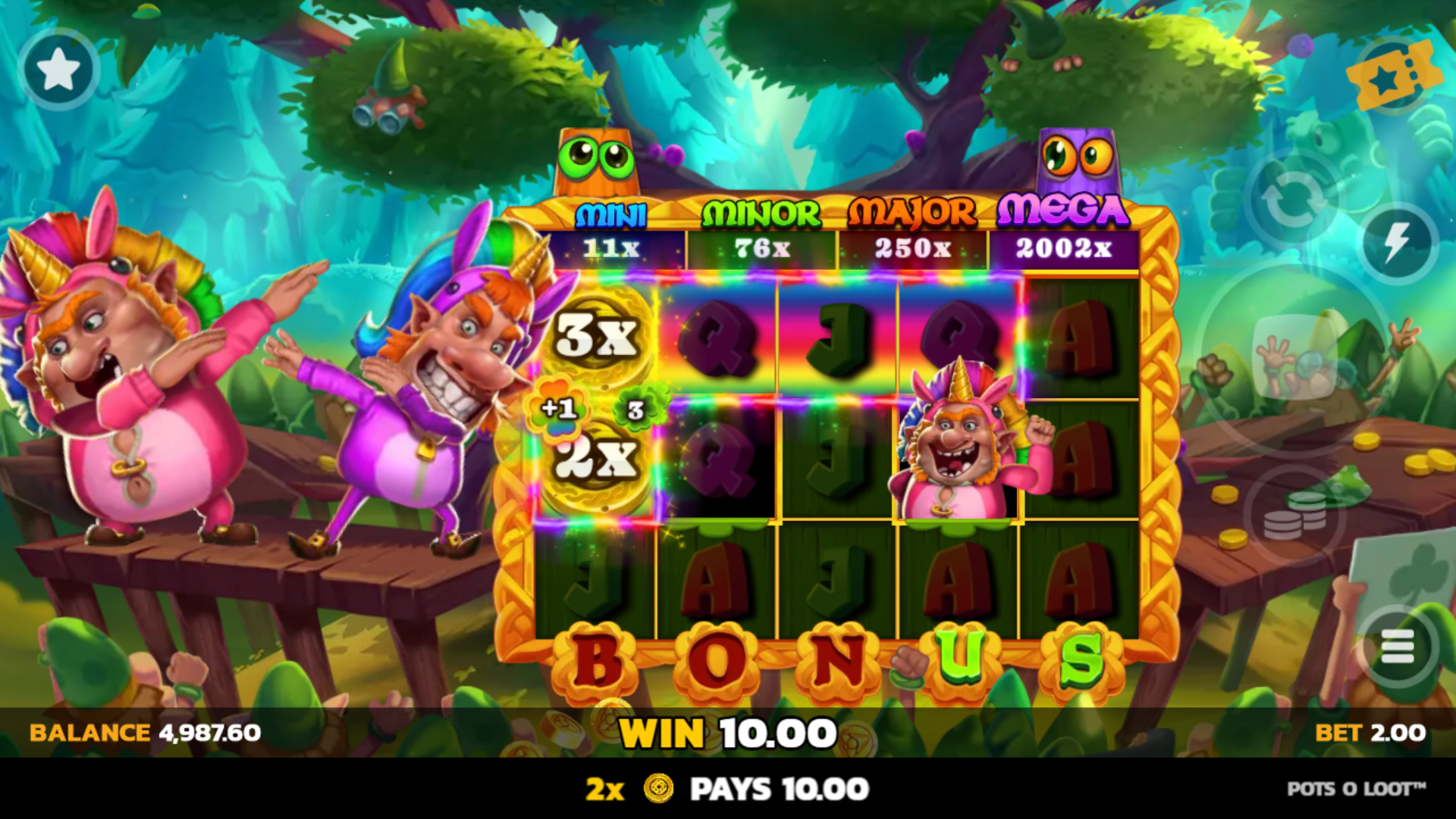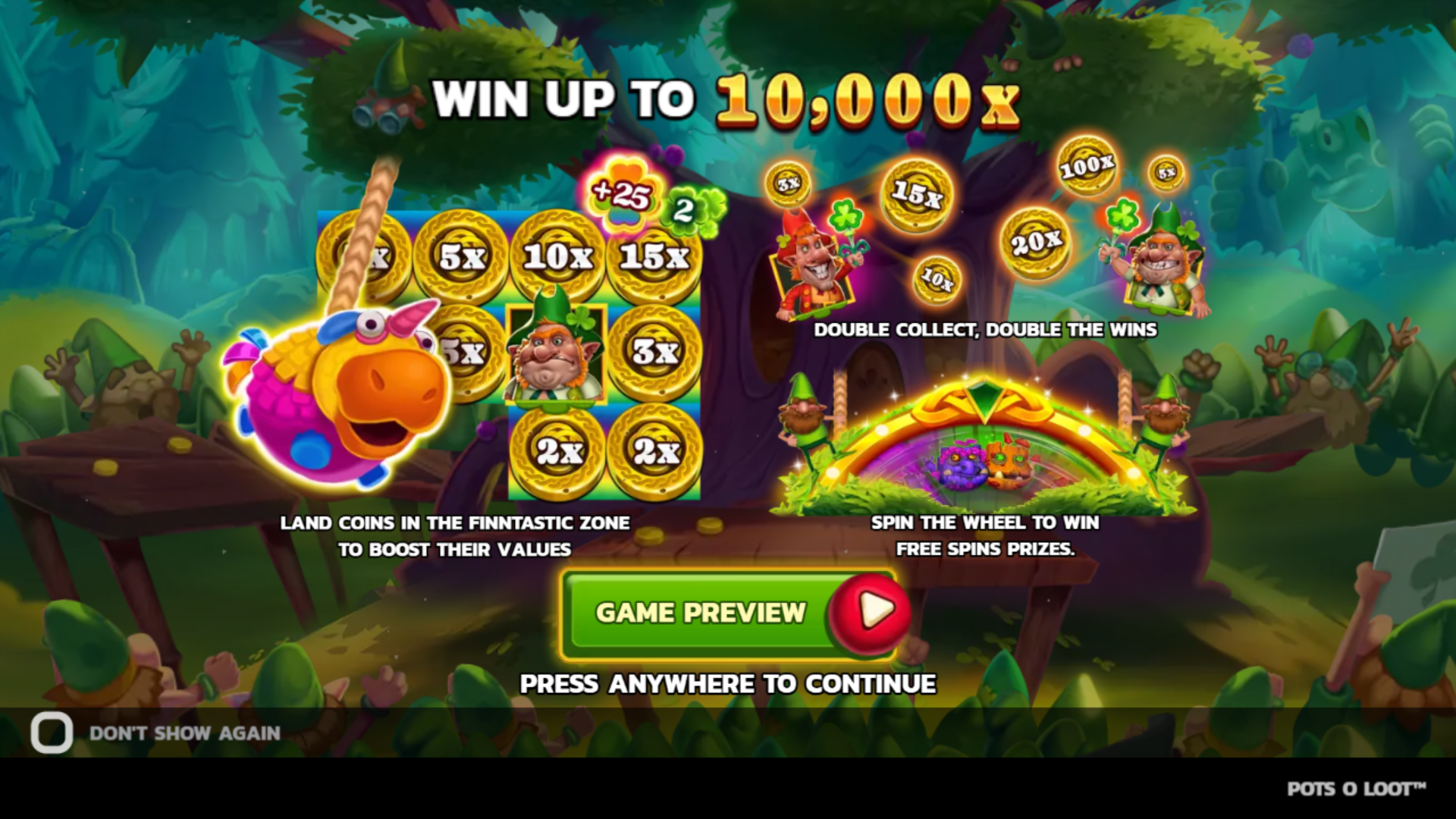 Pots O Loot™ takes the classic leprechaun slot and spikes its Guinness with rainbow-fuelled madness. This one’s souped up with double Collects, cheeky jackpot upgrades, and the FinnTastic Zone turning wins into pure céilí chaos. Rooty and Stumpy drop trails of gold, while the Bonus Wheel spins out Free Spins faster than you can say sláinte. And just when you think it’s all shamrocks and smiles, the music speeds up and the brothers reappear in rainbow unicorn onesies, because why the hell not?
