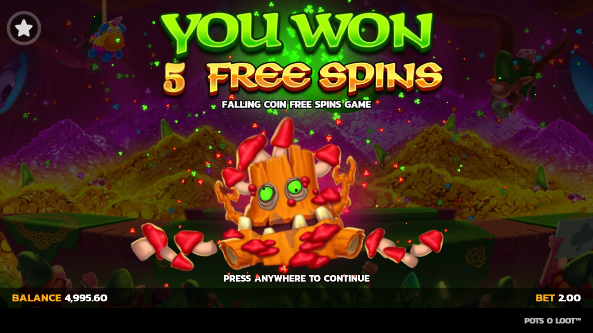 | Features | Collect / Double Collect Boost / Wild Modifier Improve / Nudge BONUS Collect Rooty Falling Coin Feature Stumpy Base Game Feature FinnTastic Zone |